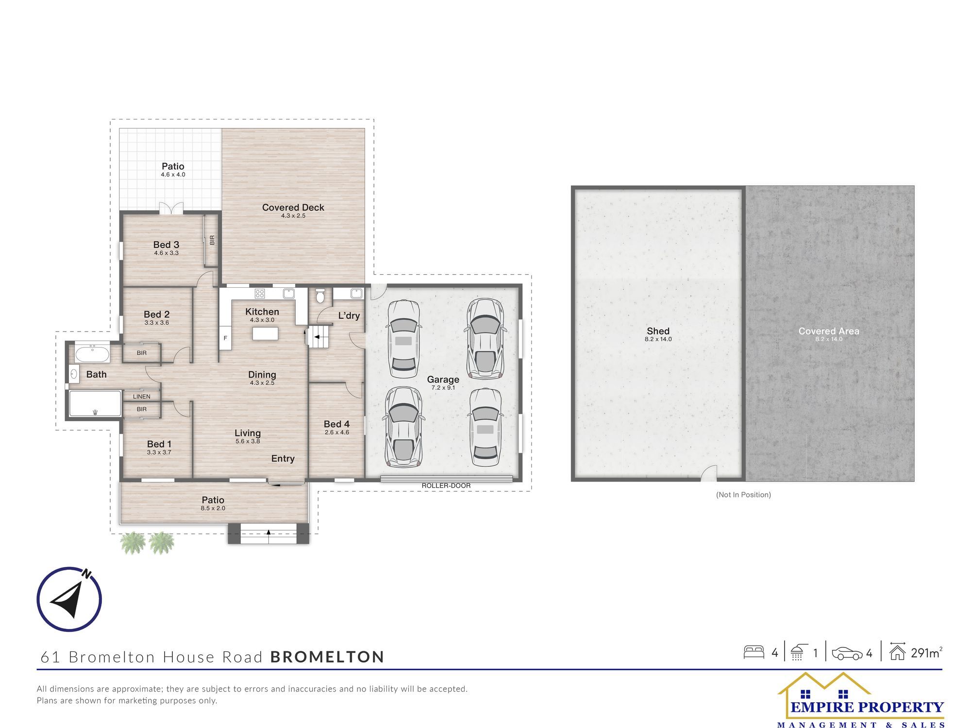 • 17m × 14m shed (approx. 238m²)