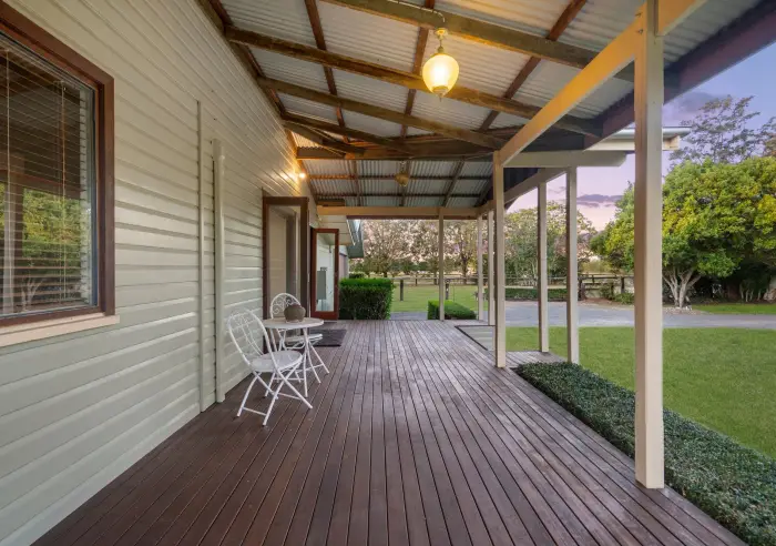 Throughout the gardens, you’ll find thoughtful touches, all adding personality and a sense of place to the outdoor spaces. Outdoor living is a highlight, with wide verandas, open lawns and quiet corners to relax and enjoy the rural setting. The back bedroom opens directly onto a private patio, creating a lovely connection between indoor comfort and the surrounding landscape.